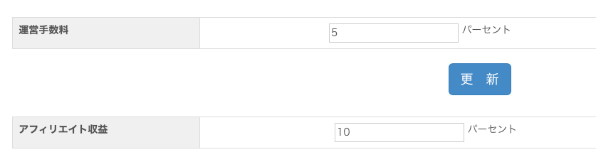 新機能として運営手数料とアフィリエイト収益をパーセンテージ方式で設定ができるように実装いたしました。
