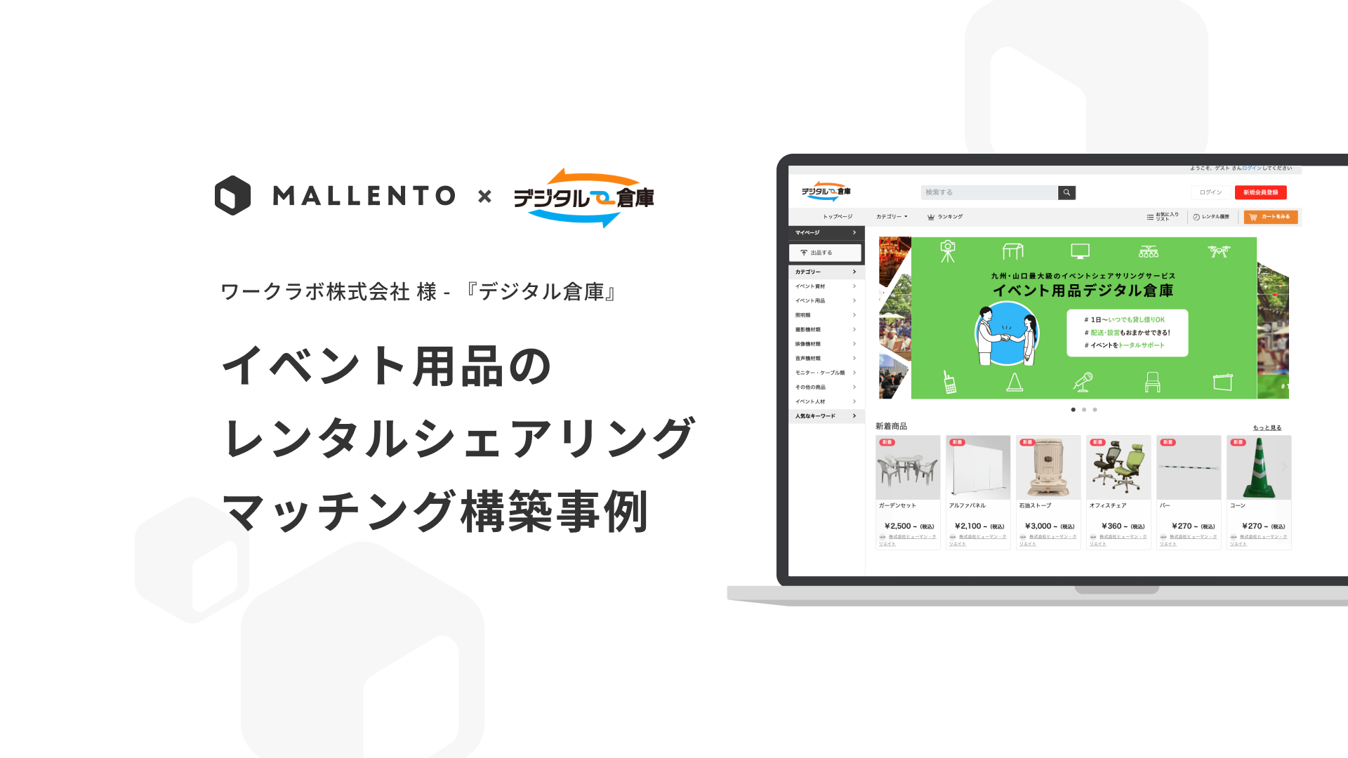 オフィス用品・イベント備品・場所・スキルなどのレンタルシェアリングマッチング構築事例