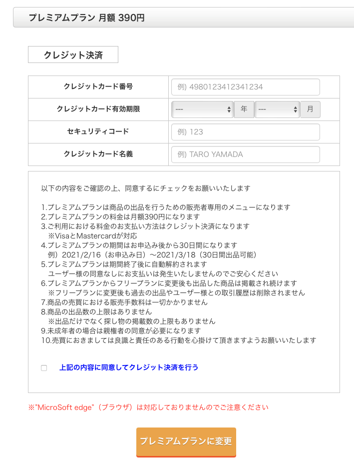 ・商品が購入された場合に購入者の情報開示(ユーザー名/プロフィールURL/名前フルネーム/住所/メールアドレス)