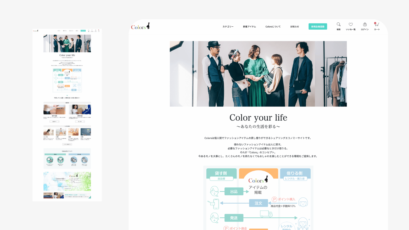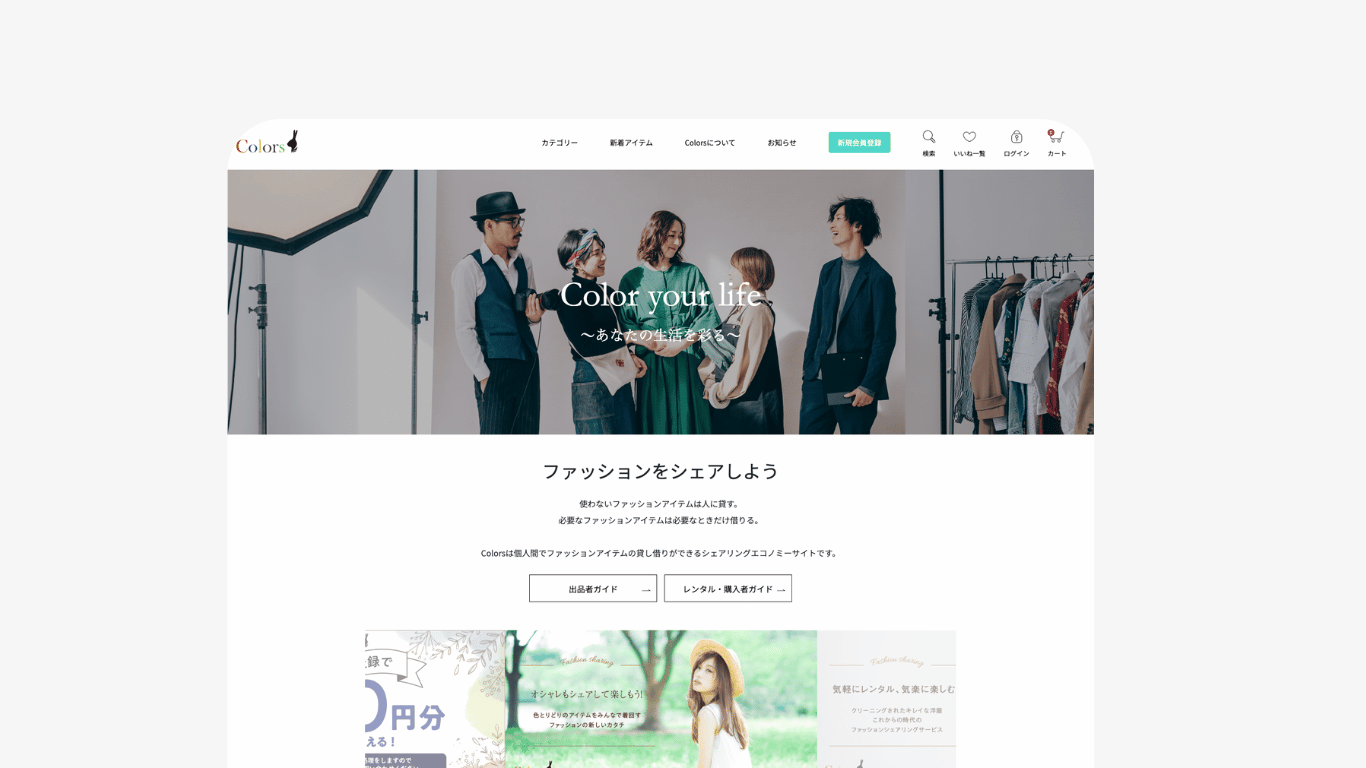 Colorsは株式会社大和屋が運営する、必要なファッションアイテムは必要なときだけ借りることができ、個人間でファッションアイテムの貸し借りができるシェアリングエコノミーサイトです。