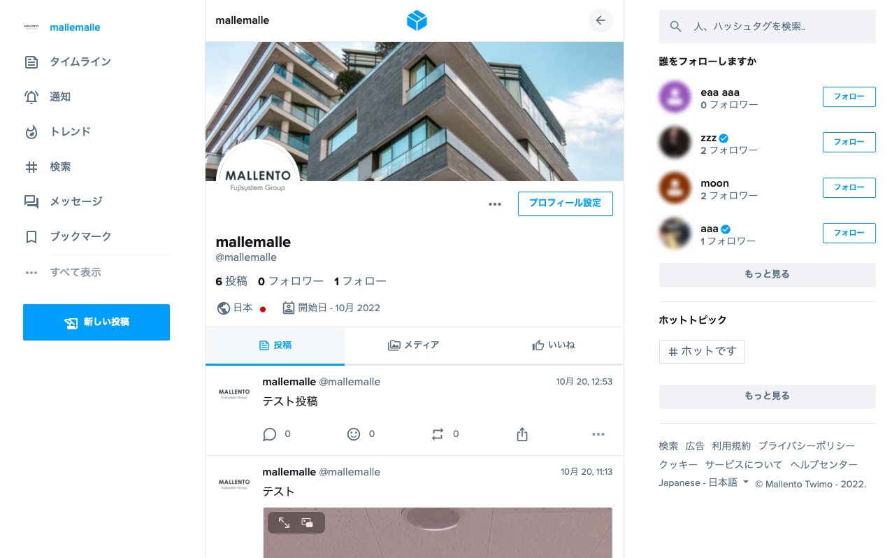 Twitter風SNSシステム(Twitterクローン)をご希望されており、今回Twitter風のプライベートSNSを開発構築、実装いたしました。