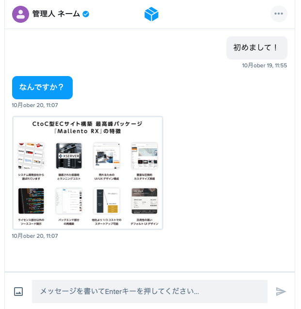 ダイレクトメッセージ機能では画像とテキストが送れるようになっております。