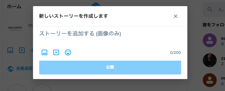 また、今回インスタグラムのストーリー機能のような仕様も実装完了しております。