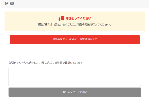 購入後は、出品者、購入者間で取引画面からエスクロー機能のフローを進めることで、取引完了を行います。