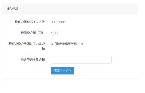 広告主、通常の商品出品者はサイト内の売上で取得したポイントを換金申請します。