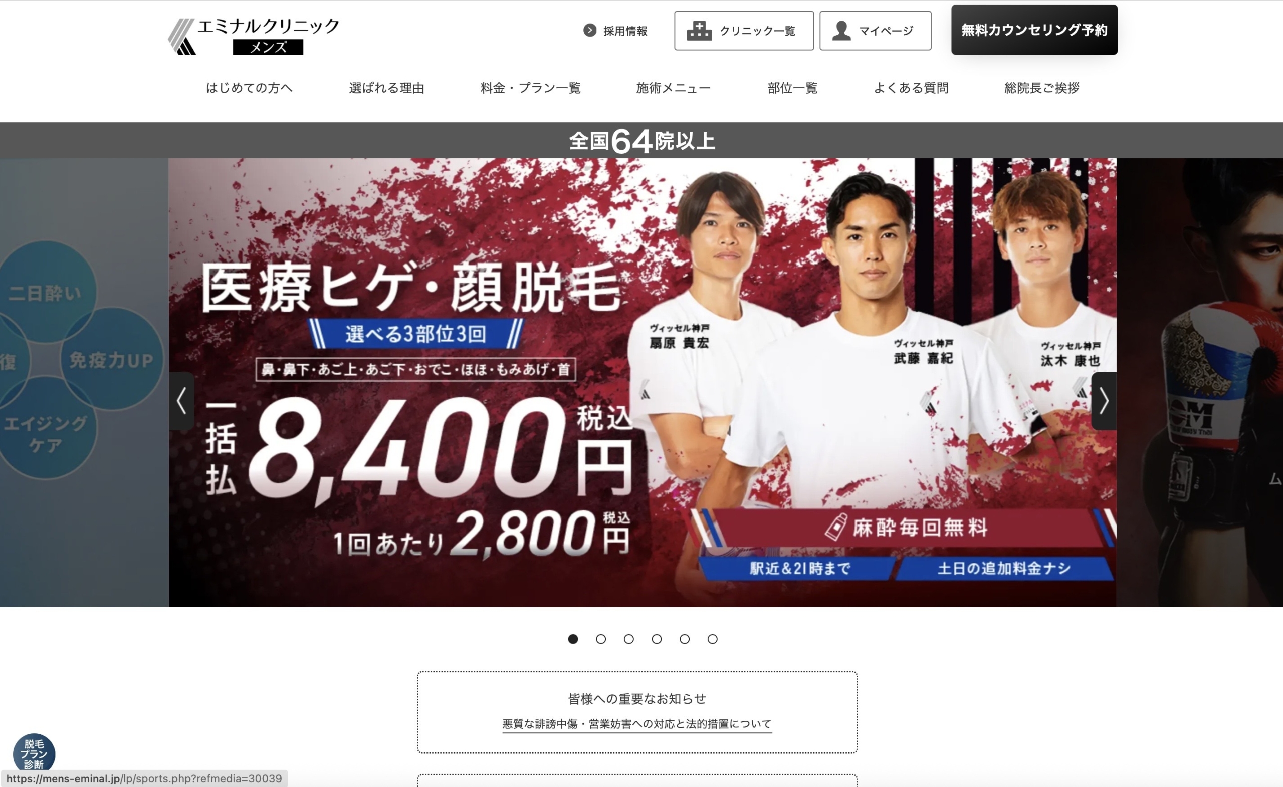 医療法人社団エミナル(Eminal Clinic)は、日本全国に展開する美容医療クリニックグループで、特に医療脱毛を中心とした施術を提供している法人です。メンズクリニックも運営されておられます。