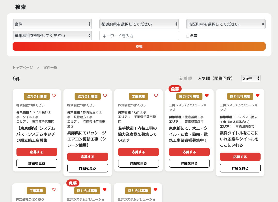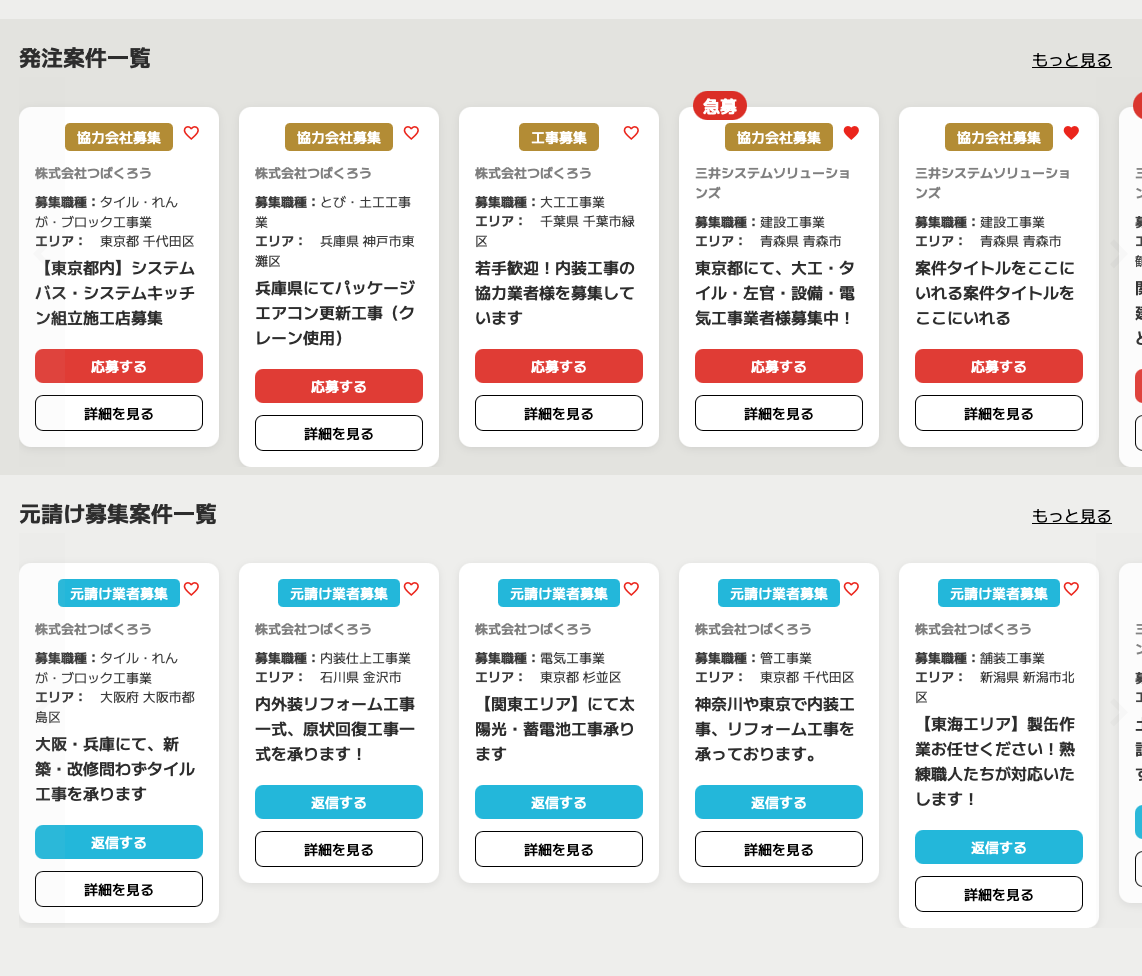 建設業における協力体制の強化や、新たな取引先の発掘を目的としたこのサービスは、業界の「人材と案件の流通」をよりスムーズにするための仕組みとして設計・構築を担当させていただきました。