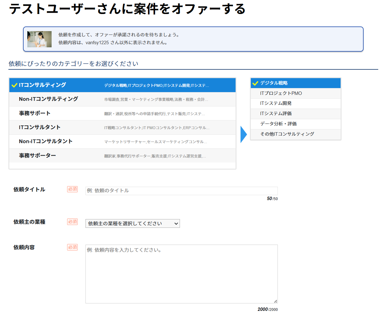 ・オファー:スキルや実績をもとに発注者から受注者への直接オファーが可能です。