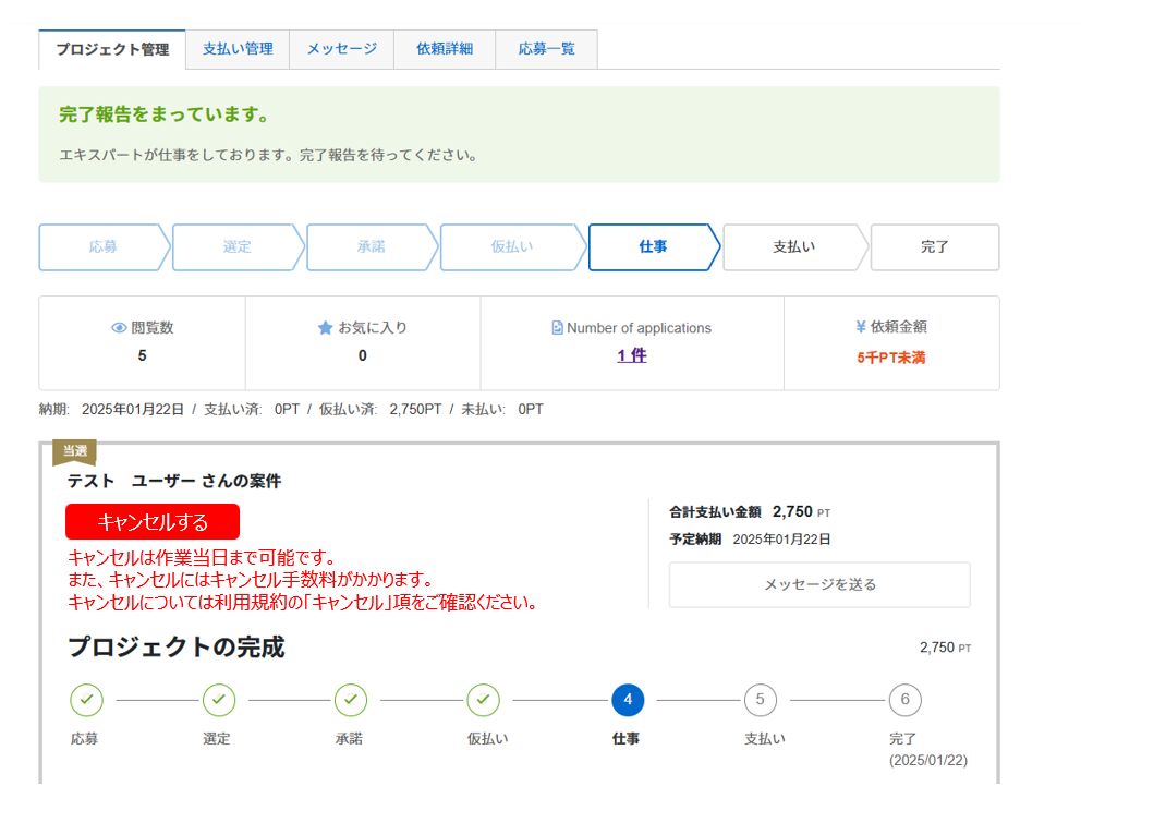 依頼者、ワーカー双方で案件のプロジェクト管理画面から「キャンセル」が行えるようキャンセルボタンを追加しました。