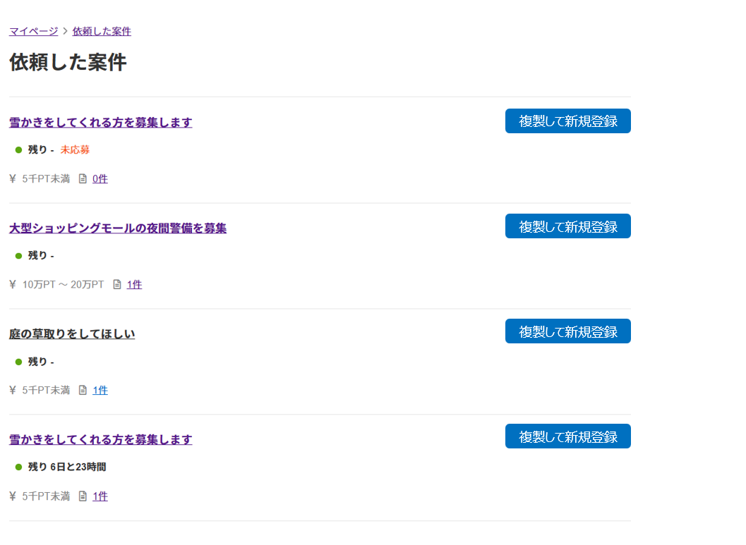 依頼者が自身が登録した案件を複製して新規案件登録できるようにしました。