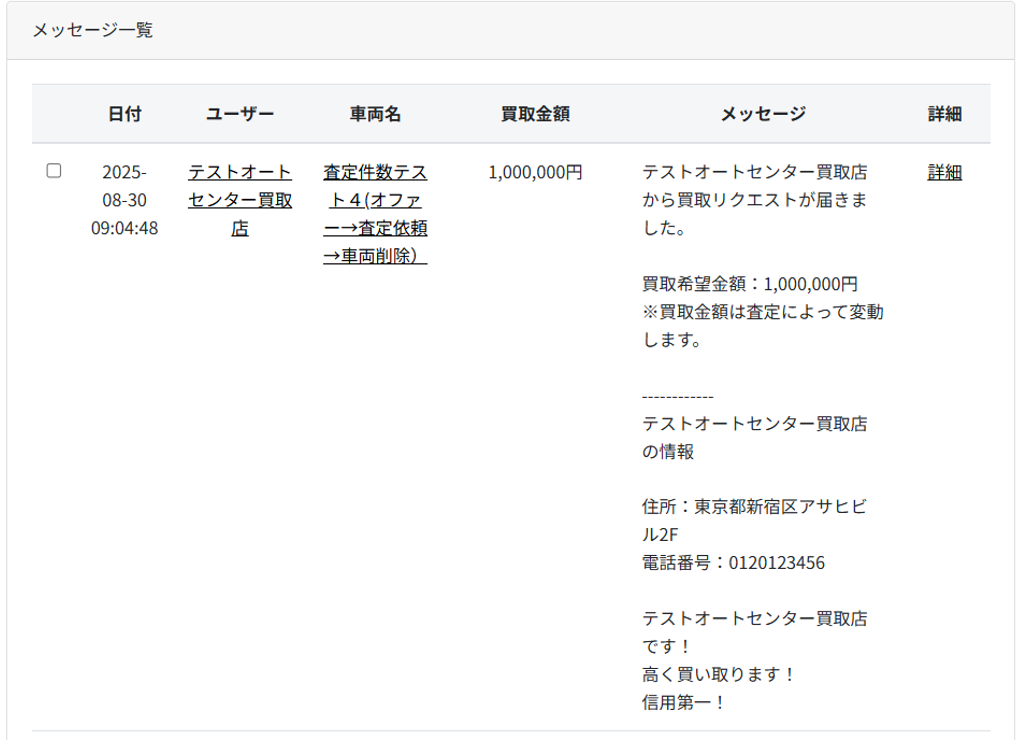 車両情報に興味を持った業者は、その車に対する買取オファー(金額やコメントなど)をシステム上から送信します。
