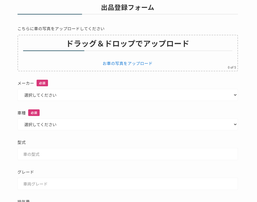 ユーザーは、車種・年式・走行距離などの基本情報を一度フォームから登録するだけで、複数の業者に対して一括で車両情報を公開できます。