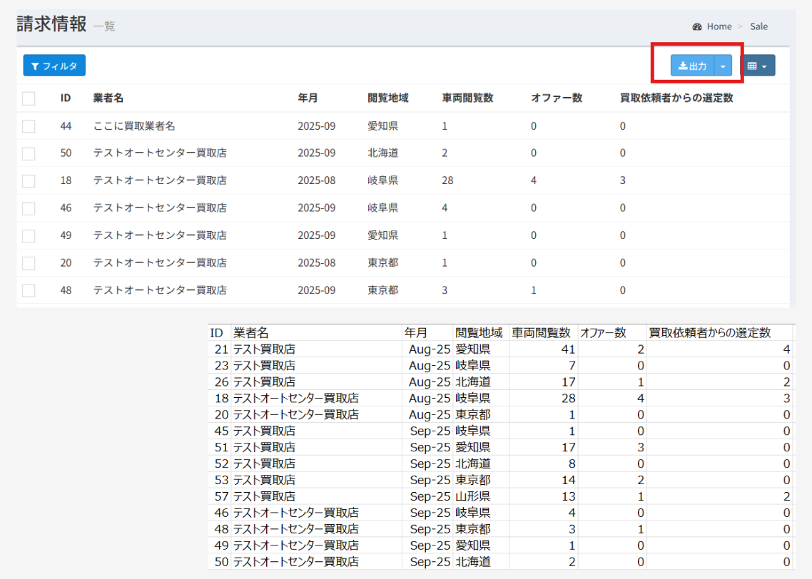 運営者向け:年月、地域別の請求情報出力機能(CSVエクスポート)