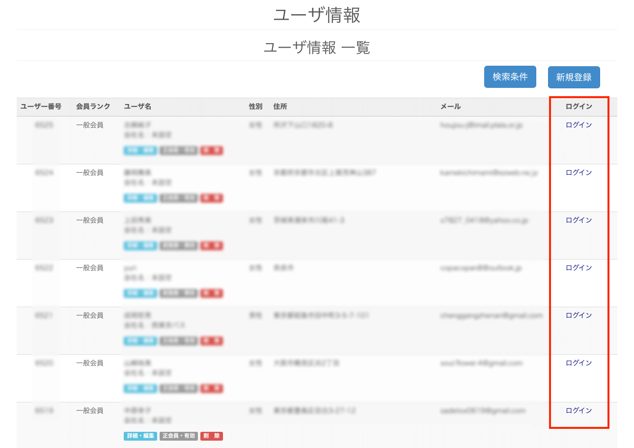 管理画面からの各ユーザーへのマイページへログインし、各ユーザーの状態をそれぞれ確認できます。