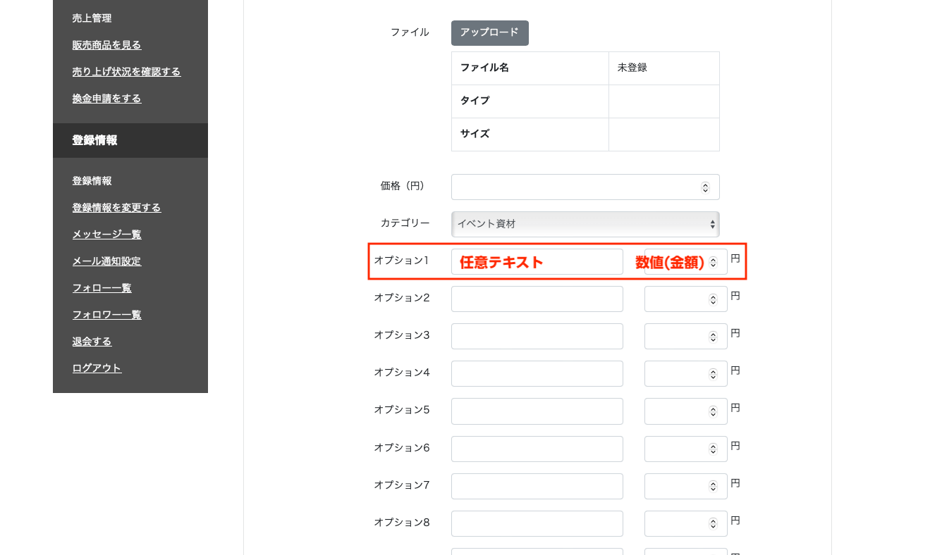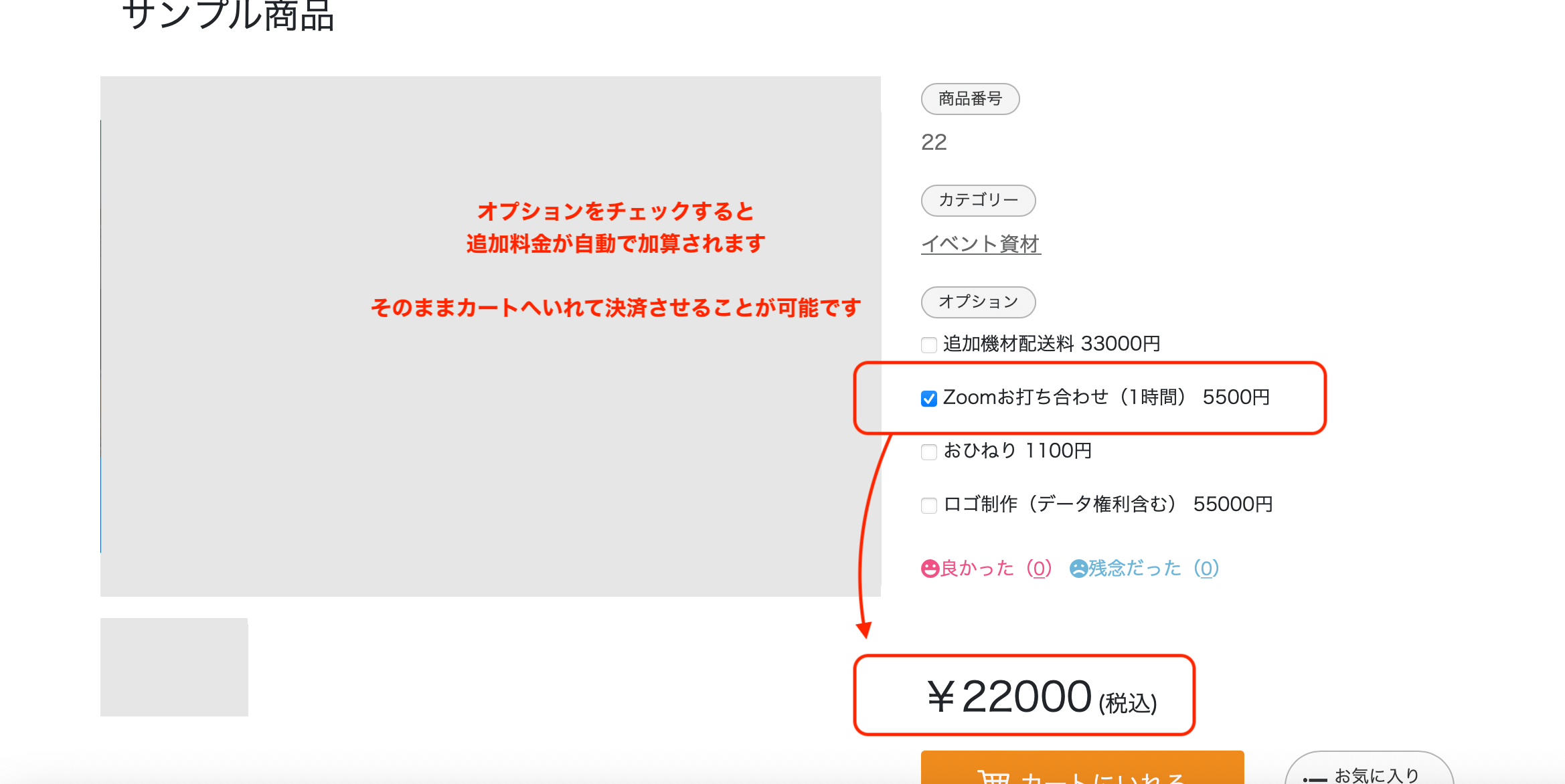 オプションをクリックすると、商品金額に合わせてオプション金額が加算されます。
