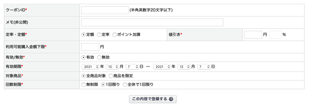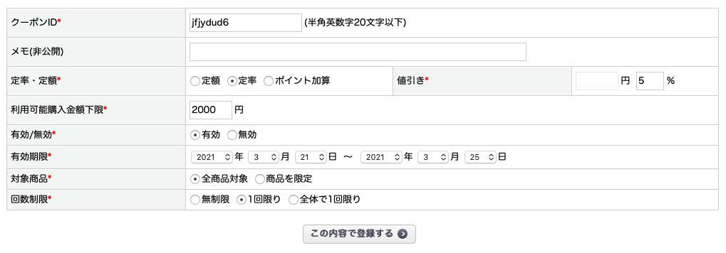 特定の期間のみ商品限定で商品のお値引き設定ができるなどです。