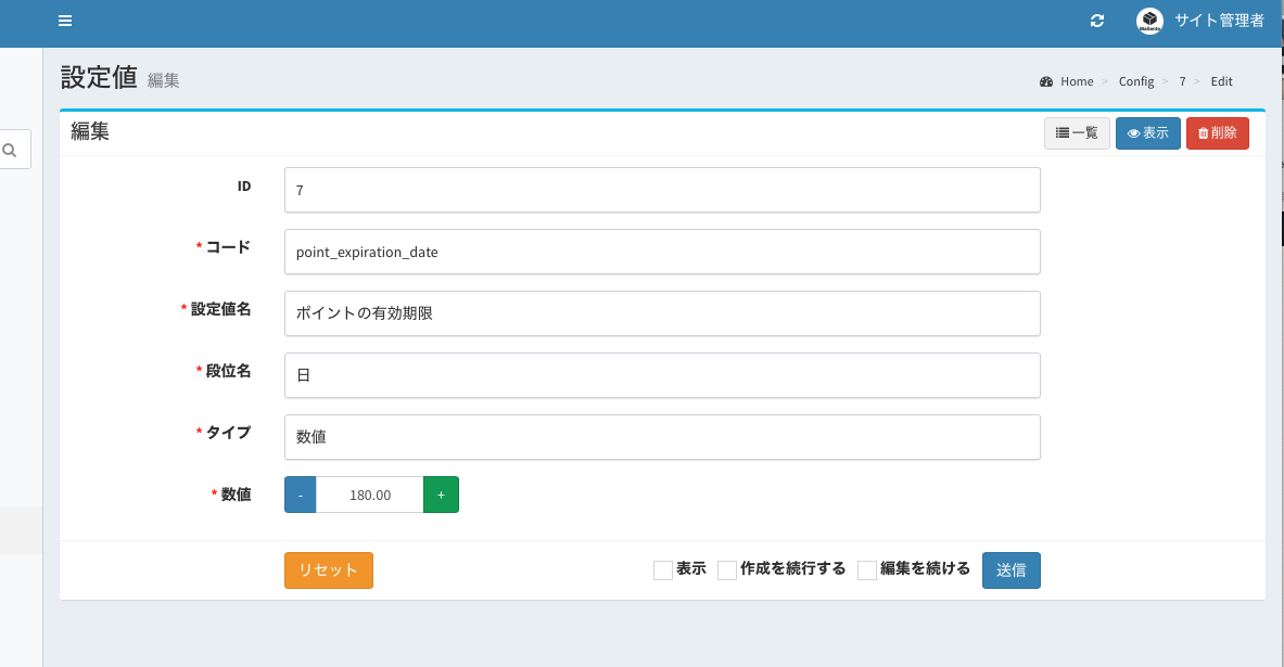 右端の『操作』ボタンの編集を押すと、有効期限が自由に設定できます。