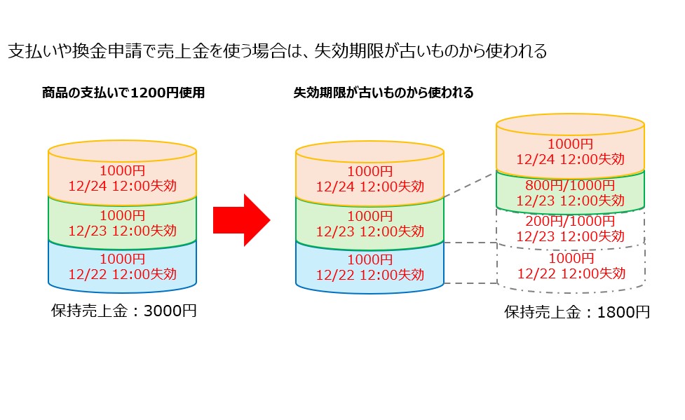 ②売上金ごとに、失効期限が設定され、その期限が過ぎている場合、売上金が失効。