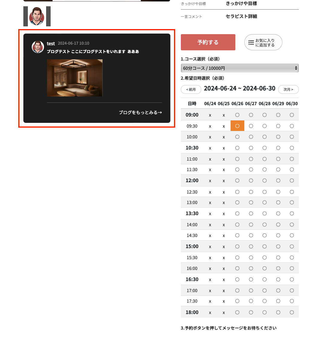 サービス出品者のブログ機能ページからは投稿追加、編集ができます。