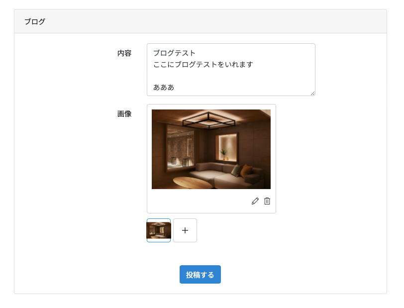 今回はマッチングサイト構築で出品者が投稿できるTwitterのようなブログ投稿機能を実装しました。