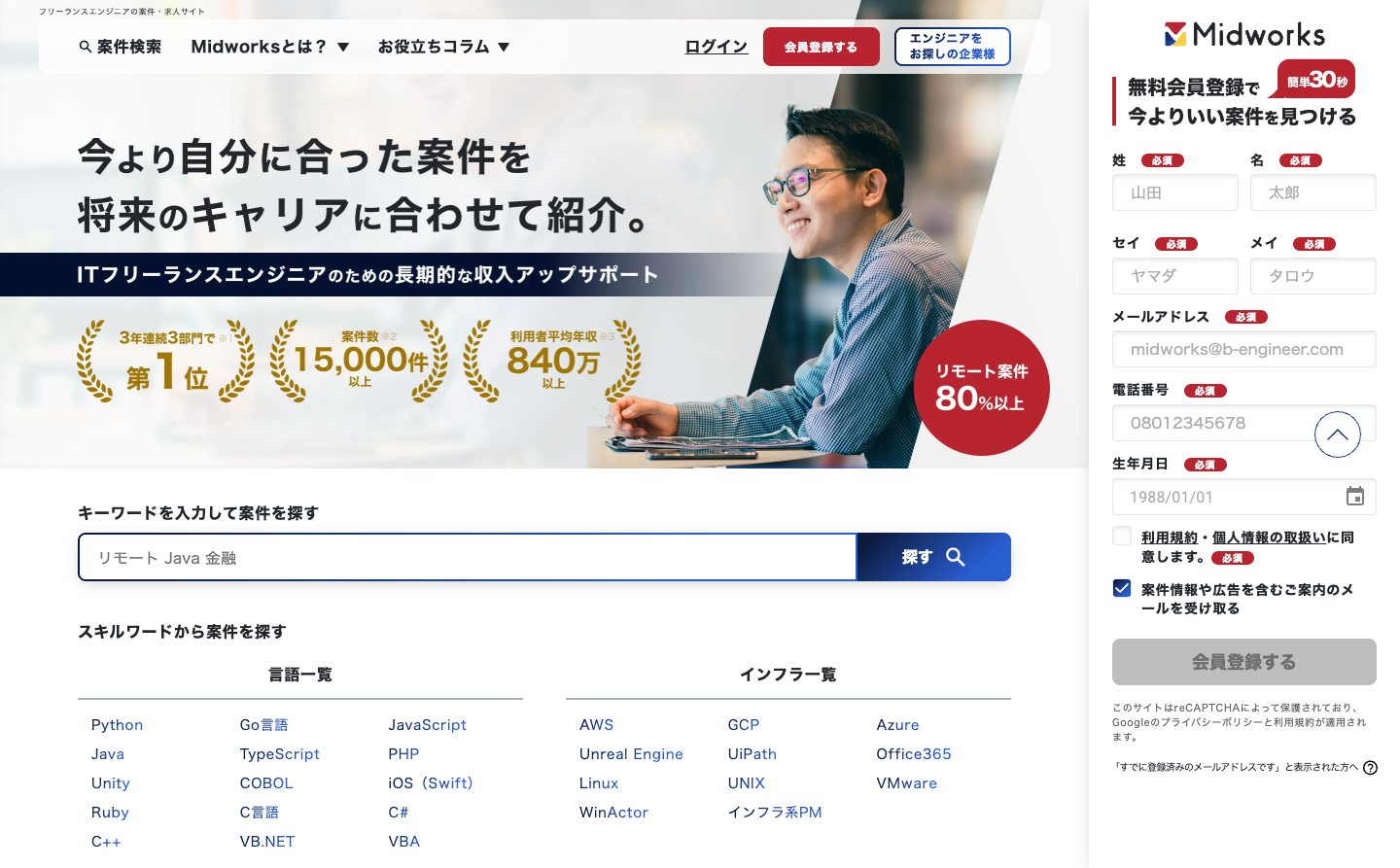 レバテックフリーランスは、ITエンジニアに特化した国内最大級のフリーランスエージェントです。