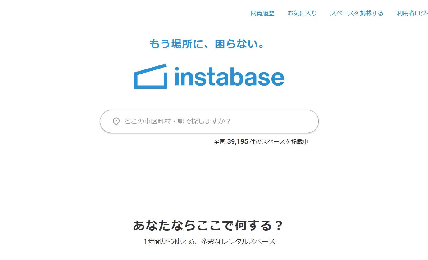 インスタベースは、スペースマーケットに並ぶ有名なレンタルスペースのポータルサイトであり、こちらも国内最大級の規模を誇ります。